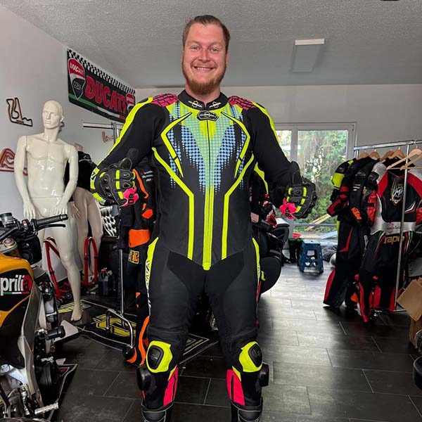 Eine maßgeschneiderte Lederkombi garantiert dir maximalen Schutz, idealen Sitz und volle Bewegungsfreiheit auf Straße und Rennstrecke. Alle Maße werden individuell für dich bestimmt, sodass Protektoren optimal sitzen und kein Druck auf falsche Stellen entsteht. Das Design ist frei wählbar, inklusive Airbag-Option und spezieller Belüftung – für höchsten Komfort und Sicherheit.